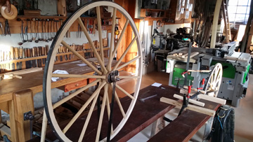 J’ai ensuite adapté un tour à bois pour tourner les moyeux, j’ai forgé les clous et autres ferrures…